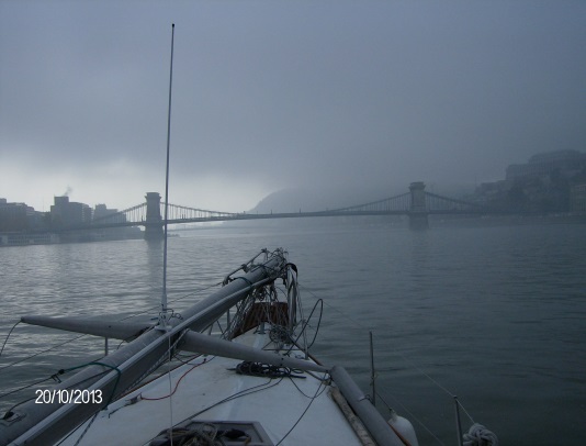 Ahogy haladtunk kifelé az Újpesti öbölből egyre nagyobb lett a köd ezért hegymenetbe indultunk tovább és kikötöttünk a Mohács mellé (köszönjük a lehetőséget).