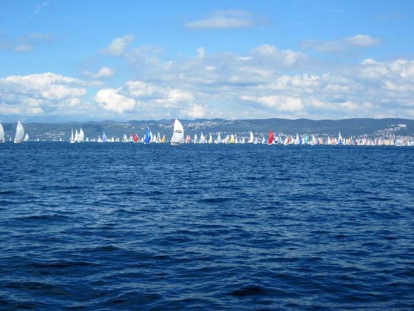 Abszolútban 72., a túrahajók között 15. hely, méretkategóriánkban pedig az összes induló közül 10., a túrahajók között 2. hely. Boldogan motorozunk haza, nézzük a szemből érkező hatalmas hajóhadat. Szép nap, hatalmas élmény volt a Barcolana, Európa legnagyobb vitorlásversenye.