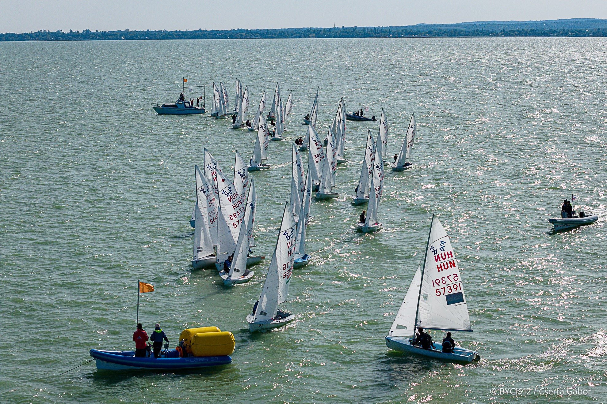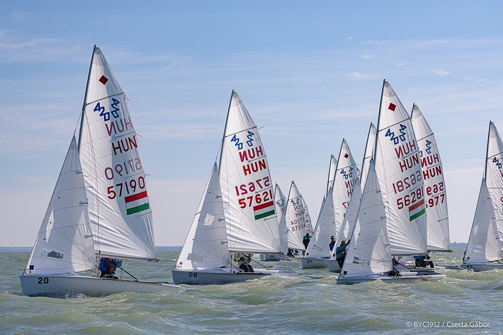 A mezőny élére a második nap végén az addig második Kovács Bendegúz és Kovács Boldizsár, a BYC 1912 versenyzői álltak, az első nap végén vezető Simó András és Kristóf Luca a negyedik helyre estek vissza, miután megkapták a második füttyös büntetésüket, így a nap első futamát DSQ-val fejezték be idő előtt. Egy pozícióval előrébb léptek a tihanyi Az testvérek is, akik hat futam után a második helyen állnak. Az első hat közé továbbra is csak a Balatoni Yacht Club és a Tihanyi Hajós Egylet versenyző férnek be, de immár 4:2 megoszlásban.