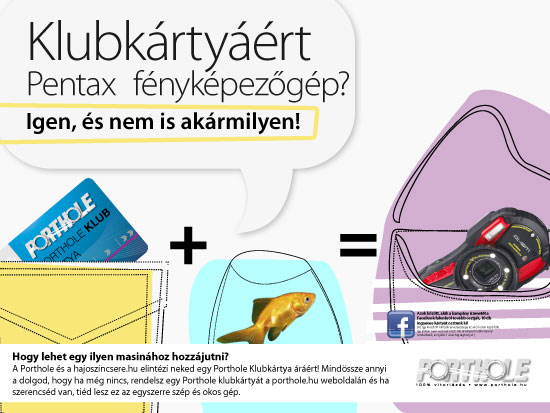 Soha nem érte még meg annyira érvényes Porthole klubkártyával rendelkezni, mint most, amikor a hajoszincsere.hu jóvoltából egy szerencsés kártyatulajdonos Pentax W-G10 víz és ütésálló fényképezőgépet kap ajándékba!