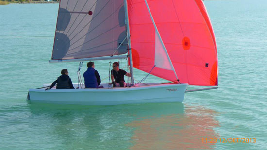 Erre a szombatra időzítettük a kis Laser Bahia tesztvitorlázását is. Abban bíztunk, hogy a gyakorlatilag felboríthatatlan kishajó kipróbálására többen vállalkoznak, de be kell látnunk az amatőr jollevitorlázás nem egy hideg vizes műfaj. Amikor azt terjesztjük a hajócskáról, hogy felboríthatatlan, az egész pontosan azt jelenti, hogy ha feldől, nem fúr le az árboca, csak elfekszik és rendkívül könnyű visszaállítani mert a hajótestbe sem kerülhet víz, hála az önürítő szerkezeti kialakításnak. Sajnálhatják is azok akik nem jöttek el, mert a kegyes időjárás sem veszélyeztette volna a gyakorlatlan próbálkozót. Mindenesetre láttuk milyen egyszerűen kezelhető. Akár három ember is kényelmesen elfér benne, miközben minden megtalálható rajta ami egy versenyhajón alapvető tartozék: a kitolható orrsudár, a gennaker, vagy a trapéz. Ha meg nincs szél árboc ki, és evezős csónakként is jól teljesít.