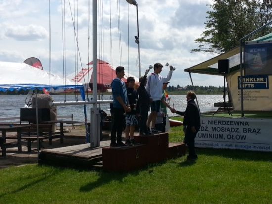 Volt időnk kipihenni a fáradalmakat, hiszen rajt csak 11:30-kor volt. 53 egység sorakozott fel a rajtvonalon, és futott 4 futamot az első napon a kreuz-raum-raum-kreuz-hátszél-kreuz pályán. A szél 12-20 csomó volt, az időjárás hűvös, barátságtalan, változékony. A fiatalok többször is villantak: ilyen volt Molnár Zsófiék elsőként való bójavétele a második futamban, ami a célban is egy 3. helyet ért, majd mentek még egy 8. helyet is. Szebiék egy 5., egy 7. és egy 8. helyet mentek, amivel a nap végére a negyedik helyen álltak. Balázsék három 10. körüli és egy figyelemre méltó 6. helyet vitorláztak, ám ez utóbbit egy óvással elvettek tőlük sajnos a lengyelek.